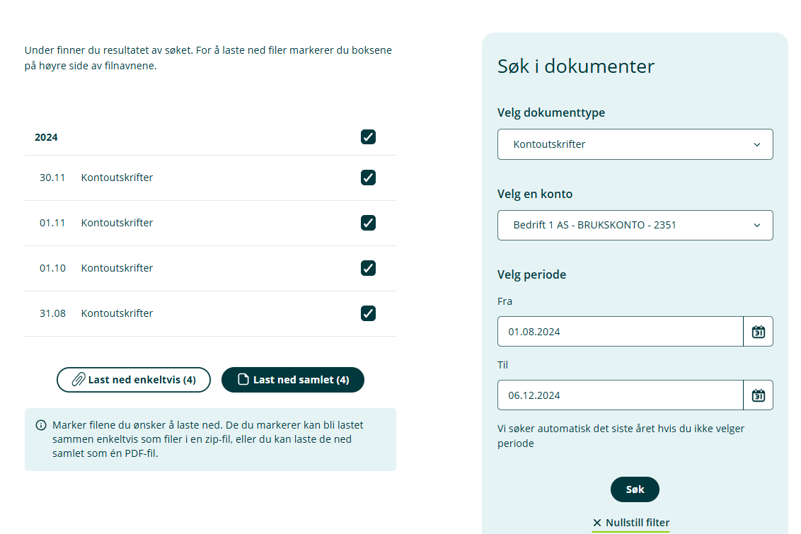 - Laste ned flere dokumenter enkeltvis (flere PDF-filer i en .zip-fil)